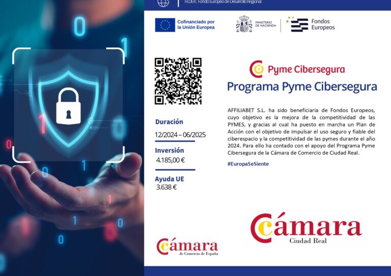 AFFILIABET se acoge al Programa ‘Pyme Cibersegura’ AFFILIABET S.L. ha sido beneficiaria de Fondos Europeos, cuyo objetivo es la mejora